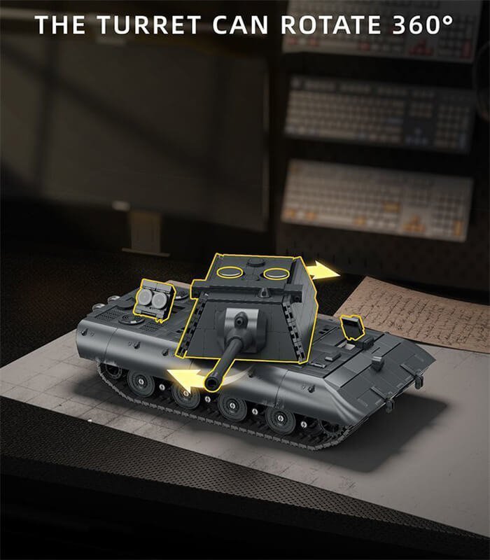 • Realistic Tank Tracks: Designed with functioning tank tracks, this model captures the true mobility of the E-100, adding to the lifelike appearance and playability.