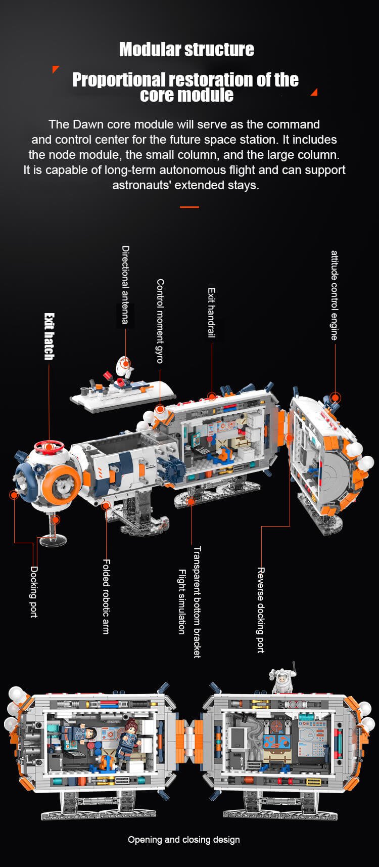 Breaking Dawn Space Station is the command and control center of the future space station, including the node module, small column segment and large column segment with long-term autonomous flight capability, which can support astronauts to stay for a long time.