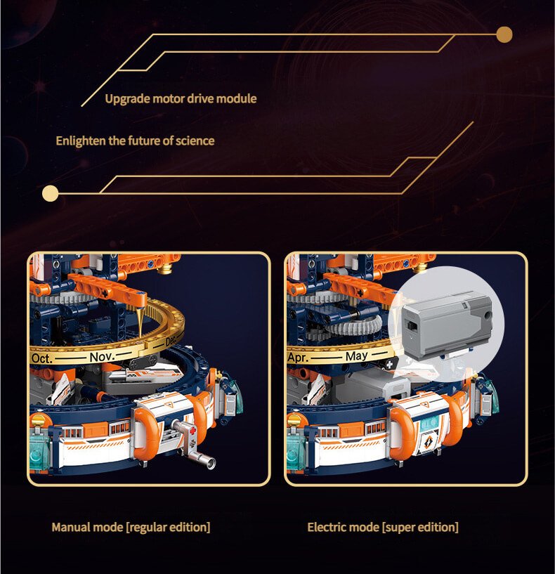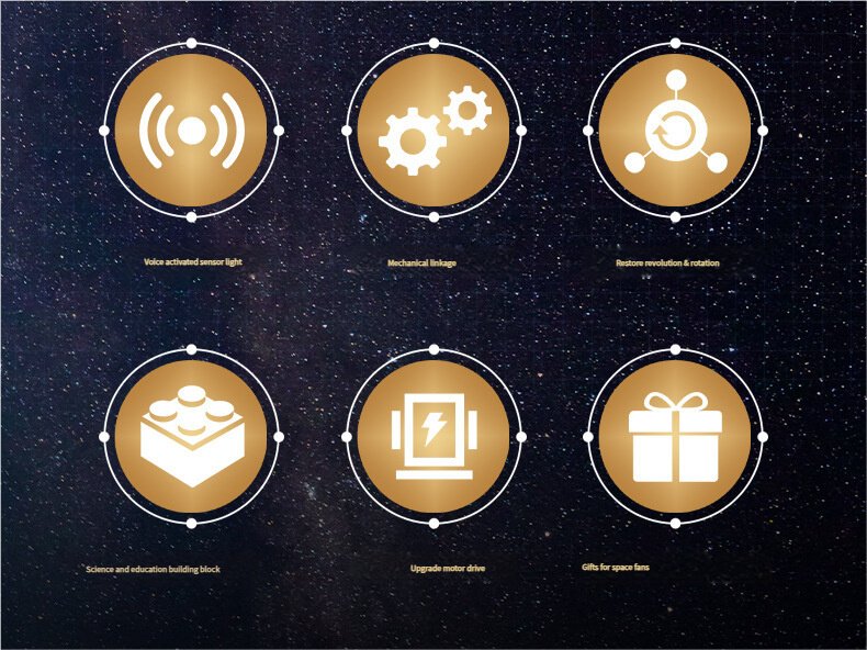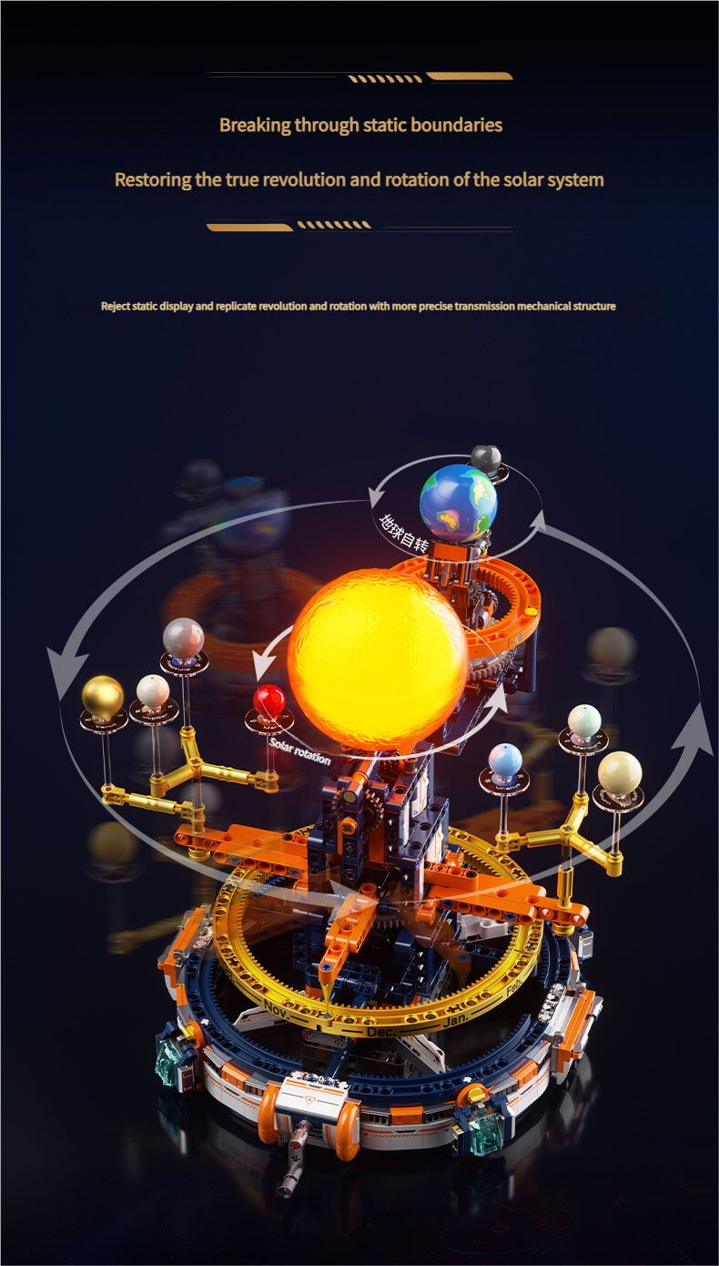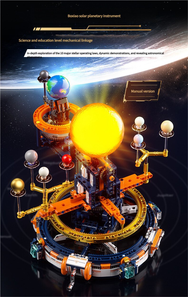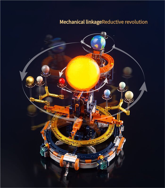 Maneuvering Orbital Display: Build a dynamic solar system with maneuvering motion, showing the Earth, Moon, and nine planets orbiting a bright LED sun, for an immersive astronomical experience.