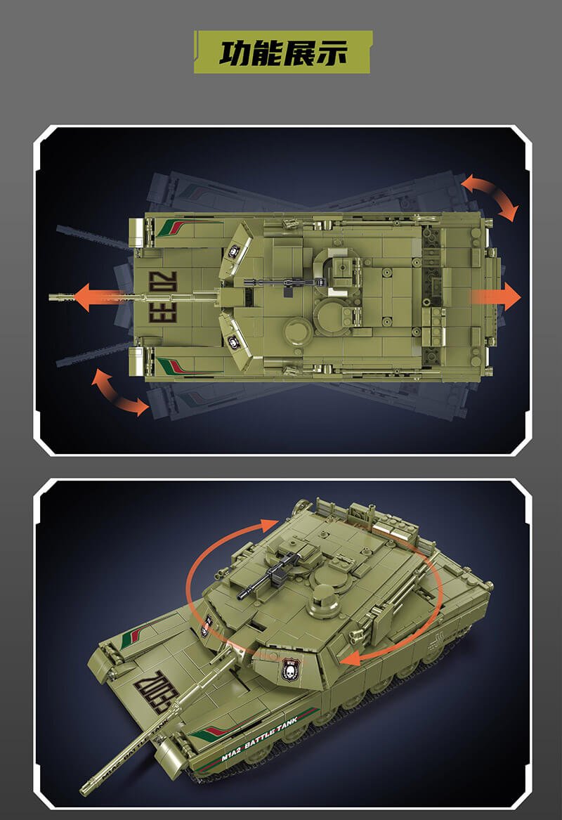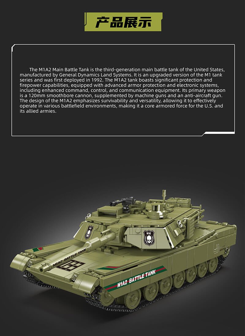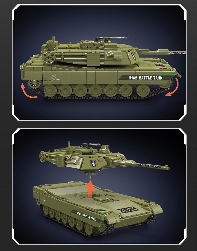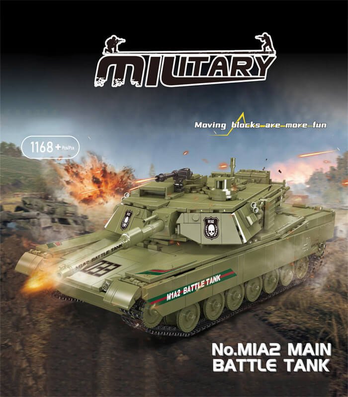 M1A2 RC Tank Building Block Toy, composed of 1168+ building blocks, can be controlled by remote control.