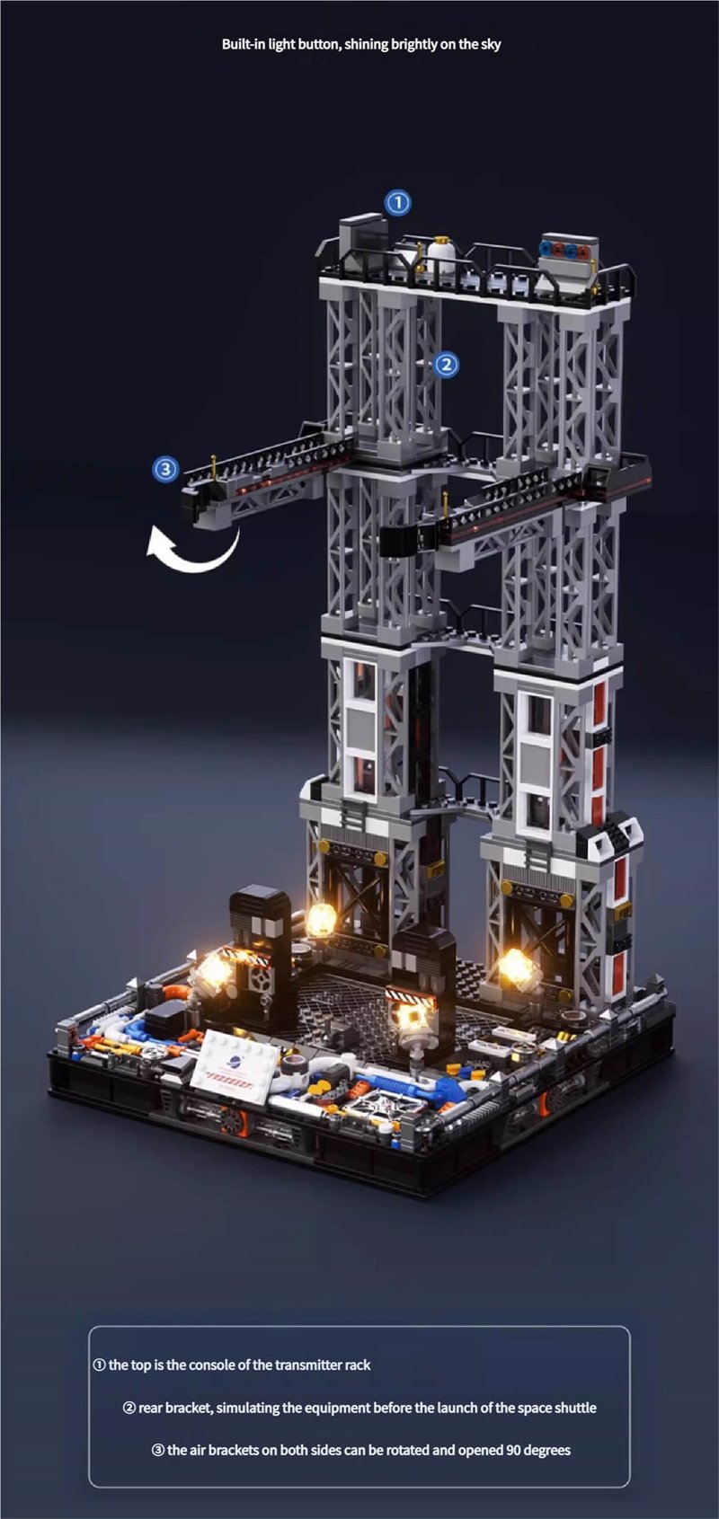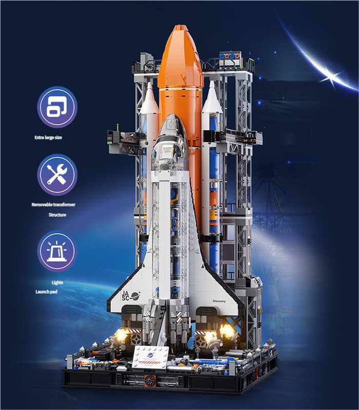 The “Space shuttle building block toys” set is a highly detailed replica ofthe NASA Super Space Shuttle, featuring 2225 pieces for an intricateand immersive building experience. This set includes a launching basewith lighting effects, allowing you to recreate exciting space missions orproudly display the model in your collection.